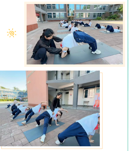 瑜伽社打破“运动=剧烈对抗”的传统认知,以温和但充满挑战的方式助力体育素养提升。课程中的平衡训练、柔韧拉伸和力量练习,能有效增强身体协调性与耐力。在这里,同学们化身“平衡小达人”“柔韧小精灵”,在瑜伽垫上挑战自我、突破极限,为中考体育项目打下坚实基础,用健康的体魄迎接未来的每一次挑战!