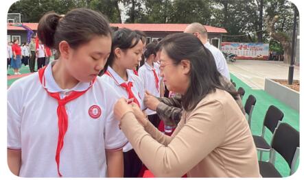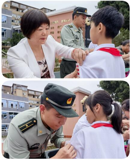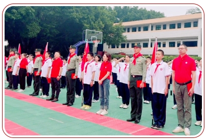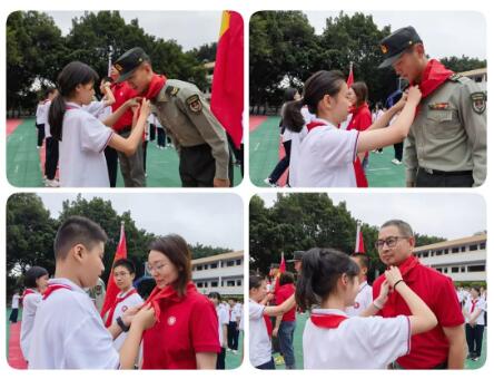为贯彻落实中央、省、市关于全面加强新时代少先队工作的意见、精神,传承红色基因,培育时代新人,团结、教育、引领广大少先队员做共产主义事业接班人,在中国少年先锋队成立74年之际,我校隆重举行“红领巾心向党,争做新时代好队员”建队主题活动。在本次活动中,我们成立了新一届少先队大队,并在七年级的少先队员中选出了大队委,其中,欧芷烨同学担任大队长,孔炫尧、王筱优同学担任副大队长,刘芳妤等14名同学担任大队委员。同时,为了加强少先队工作的组织管理,开创工作新局面,我校聘任了中国人民解放军某部优秀官兵为少先队大队及七年级各中队校外辅导员、杨晓青老师为七年级中队总辅导员、陈敏俊等老师为七年级各中队辅导员。