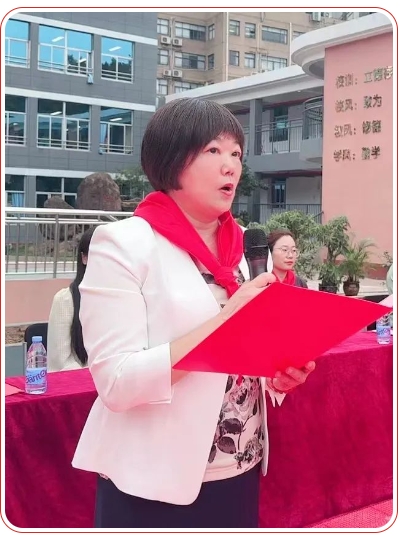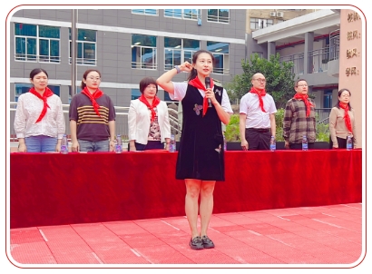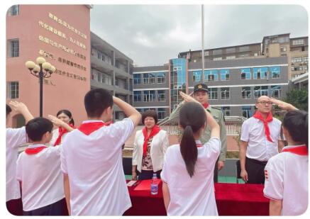 学校党支部书记、校长曾淑煌发表致辞。她首先感谢解放军部队对我校工作的大力支持,选派出优秀的人民子弟兵来担任大队、中队校外辅导员。这既是学校的荣幸,也是少先队员们的荣幸。接着,曾校长寄语全体少先队员和辅导员,希望辅导员们要履行好党赋予的光荣使命和职责,牢记为党育人、为国育才的初心使命,落实立德树人根本任务,继续开展红领巾奖章争章活动,引领、激励少先队员不断增强光荣感,从小听党话,高举队旗跟党走,为中国特色社会主义事业培养合格建设者和可靠接班人;希望少先队员们要争当有志向、有梦想,爱学习、爱劳动,懂感恩、懂友善,敢创新、敢奋斗,德智体美劳全面发展的好少年,自觉培育和践行社会主义核心价值观,听党话,跟党走,热爱祖国,热爱人民,热爱中国共产党,心有榜样,学习英雄人物、先进人物事迹,争做新时代好队员;希望少先队员们以胸前的红领巾时刻激励自己,做一个文明有礼的立志好少年,志存高远、立志成才,勇于创造,拼搏奋斗,从自己做起、从身边做起、从小事做起,为鲜艳的红领巾增添新时代的光荣。她还勉励少先队员们积极主动学习党、团的理论知识,了解中国共产党、中国共产主义青年团的光辉发展历程,争取早日加入中国共青团组织,成为光荣的共青团员。