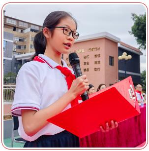 随后,欧芷烨同学代表少先队大队委发言。她表示,被选入大队委,深感使命光荣、责任重大,大队委是队员们的知心人和好帮手,委员们一定会尽心、尽力、尽责地帮助大家,和大家一起共同成长进步;并且,大队委们将更加严格要求自己,遵纪守法、积极进取,以身作责、勇于承担,热情服务、无私奉献,积极为少先队活动搭建更加丰富多彩的舞台,让队员们在活动中收获,在活动中成长;同时,她倡议全体队员们要勇敢地承担起时代的重任和祖国的重托,树雄心、立壮志,不负青春、不负梦想,为中华民族伟大复兴而努力学习。