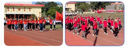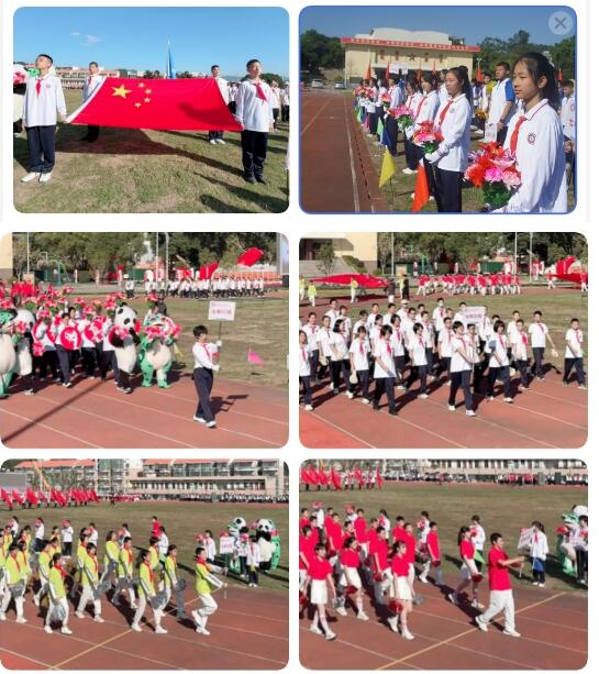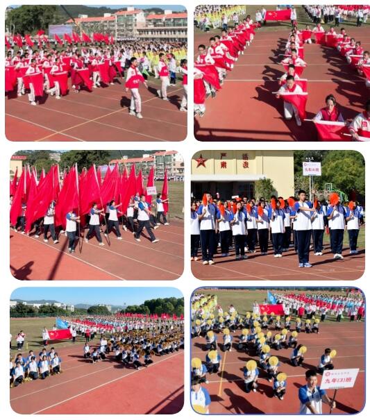 各班级、年段老师的方阵在雄壮的歌曲声中,在国旗方队的引领下,踏着整齐的步伐,喊着响亮的口号,经过主席台。红旗招展壮志凌云,蛟龙翻腾乘风弄浪,碧涛荡漾扬帆起航……青春的活力和热情扑面而来。精彩纷呈的入场式率先成为运动会的一大亮点。