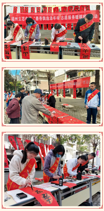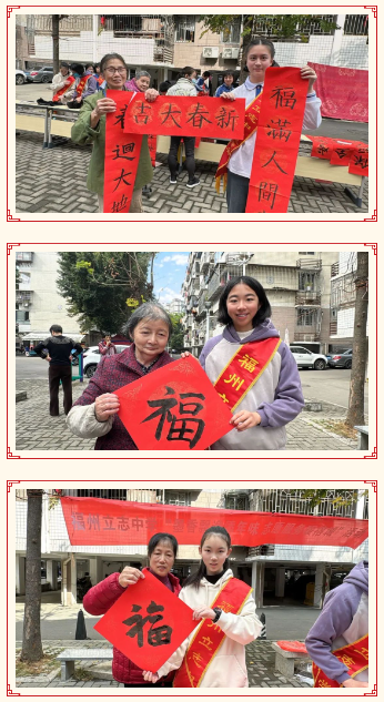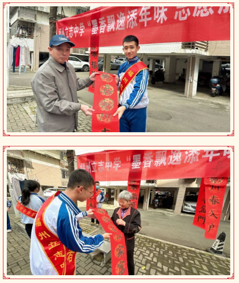 2024年2月1日,福州立志中学的学生志愿者积极行动,在德育处和团委的组织下,前往保福小区开展了一场满满年味的“墨香飘逸添年味,志愿服务暖榕城”活动,写春联、送窗花、做清洁,为小区居民送上了新春的祝福和关怀。