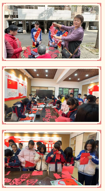 同时,志愿者们也将事前准备好的精美窗花送到居民手中,为他们装饰门窗。这些窗花色彩鲜艳、图案精美,寓意着吉祥如意、幸福安康,让居民们感受到了新春的温暖和关怀。